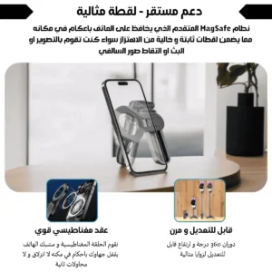 قوة مغناطيسية مثبتة: تم اختبارها مع أجهزة ثقيلة مثل iPhone 15 Pro Max، مما يضمن ثباتًا حتى في الظروف المتحركة أو الرياح.